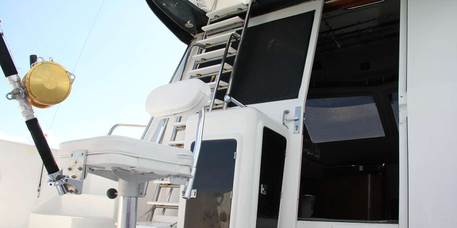 Convenient and wide swim board with the marine ladder for easy access to the sea for snorkeling, swimming or relaxing after fishinig.