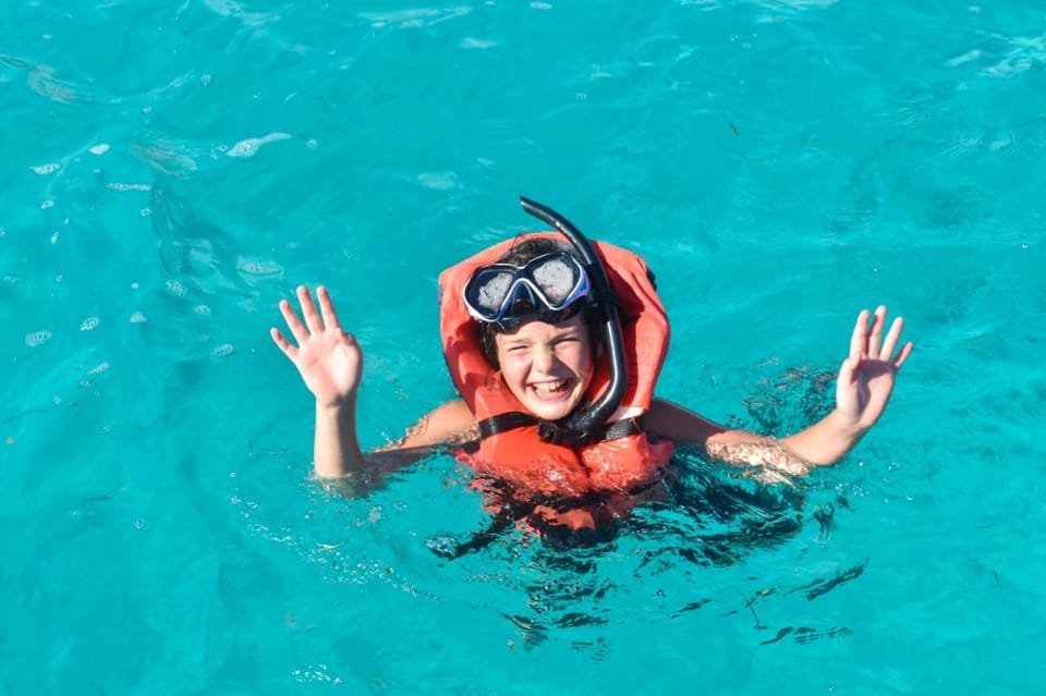 Set sail, cruising through azure waters towards the island’s pristine shores. Stay hydrated during the day with soft drinks or indulge with some alcoholic beverages Along the way, revel in a 45-minute stop at the enchanting Natural Pool, where crystal-clear waters and starfish await.