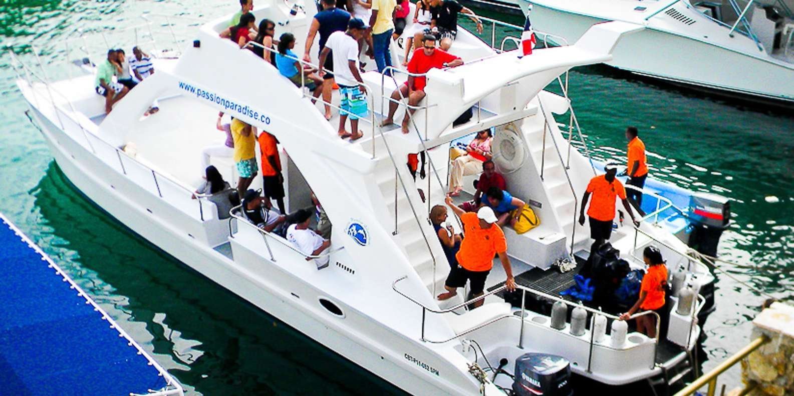 Our team will be waiting to welcome you aboard ‘Paradise’ with tropical refreshments. We will leave the marina at around 10.00am, setting a course for the east side of Catalina Island, to the first dive site known as ‘The Wall’, with depths from 5m (16ft) to 40m+ (131ft+).